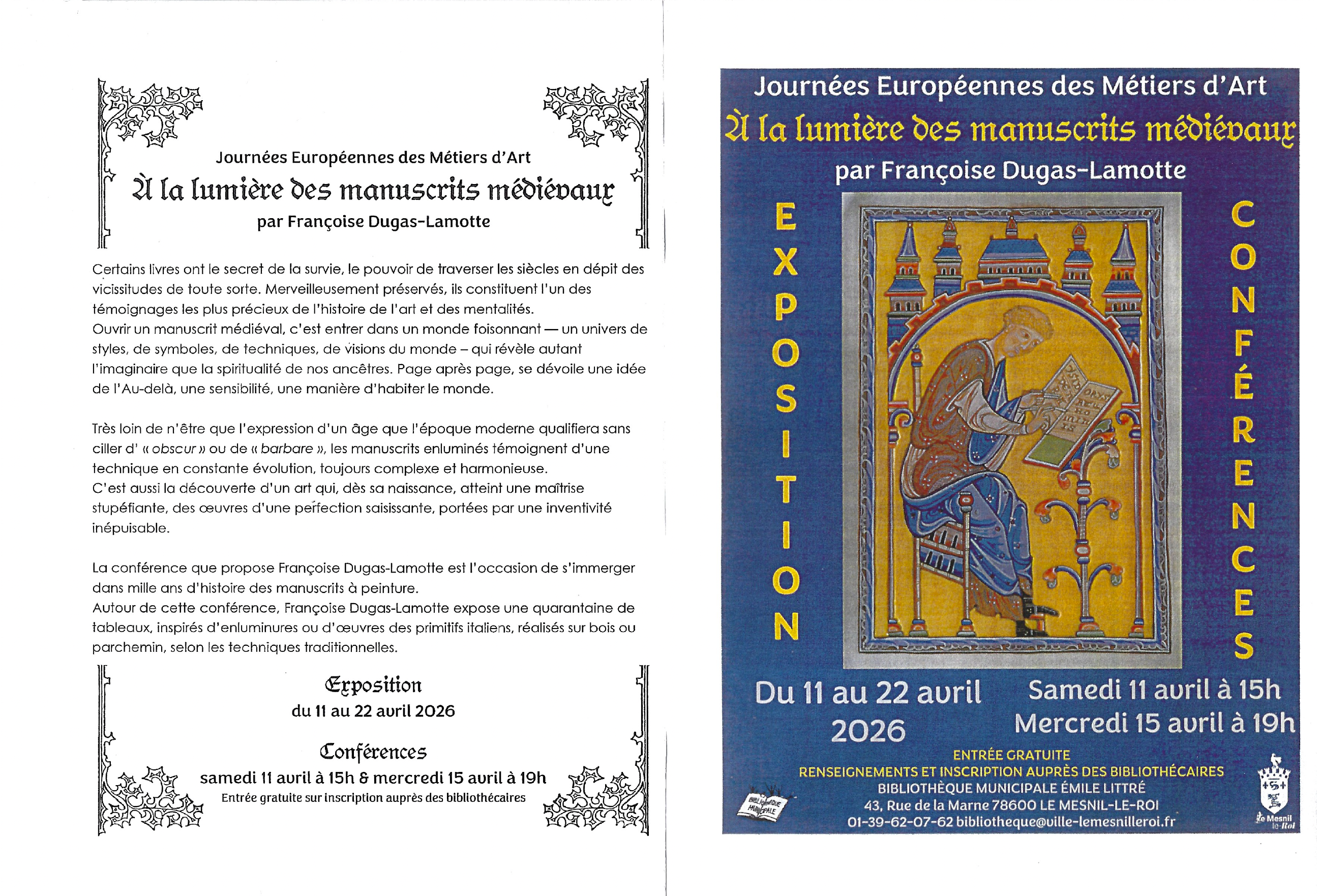 Exposition Conférences - À la lumière des manuscrits médiévaux - Bibliothèque du Mesnil le Roi.