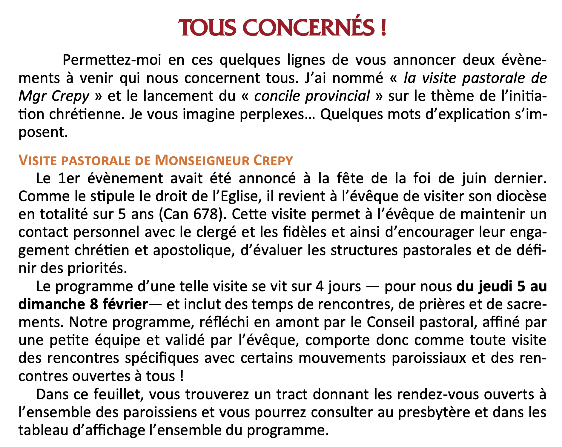Monseigneur Crepy passera dans notre groupement paroissial du 5 au 8 février prochain pour nous rencontrer, nous enseigner et célébrer avec nous !