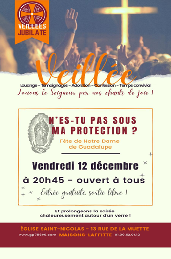 À l’occasion de la fête mariale de Guadalupe, vous êtes tous conviés à la veillée de prière sur le thème : « N’es-tu pas sous ma protection ? ».