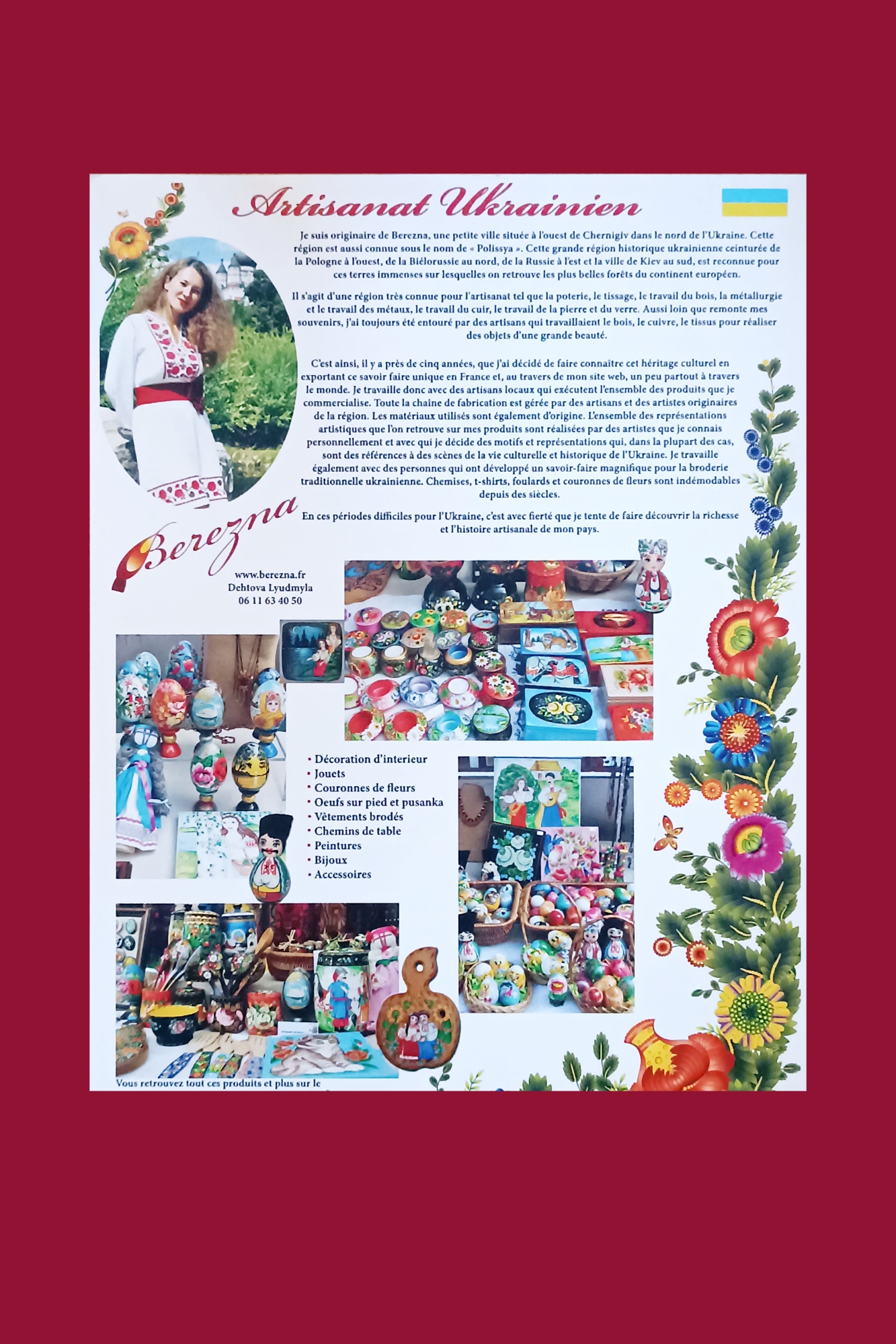 Je fais découvrir l'histoire artisanale de mon pays en exportant des produits d'ukraine. Je connais personnellement chaque artisan.
